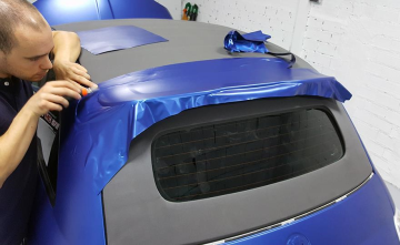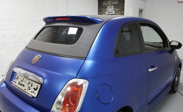 Cambio de color de un ABARTH 695 TRIBUTE FERRARI de gris a azul ultrametalizado satinado de HEXIS. BESTIAL.